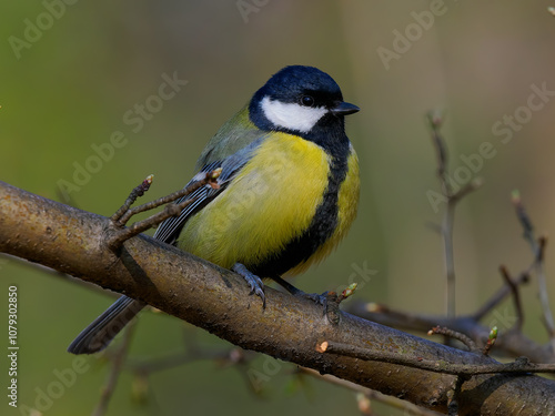 © fotomaster, Fototapeta premium tit sitting on a tree branch against a blurred background