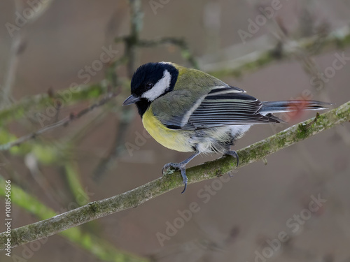 Fototapeta premium tit sitting on a tree branch against a blurred background