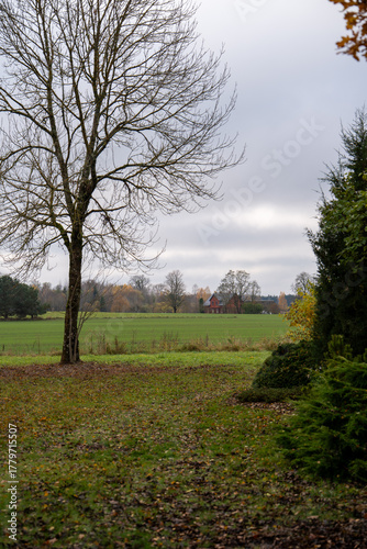 © Edgars, Obraz premium Title: A Tranquil Rural Farmstead in a Late Autumn Landscape