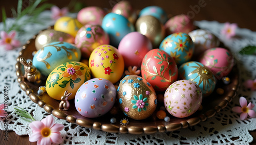 Fototapeta premium Title: A Vibrant Easter Egg Set Showcasing a Dozen Ornate Designs