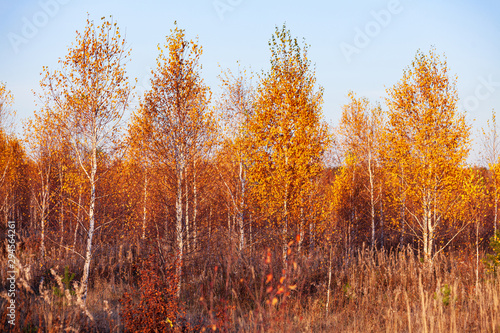 Fototapeta premium Title: Autumn in a birch forest.