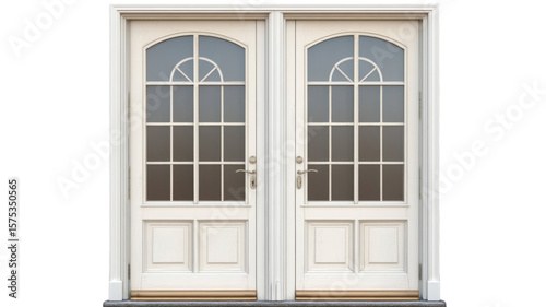 Fototapeta premium Title: Elegant White Double Door Pair Isolated on Plain White Background for Minimalist Architectural Design