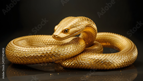 © Edwardjhon, Fototapeta premium Title: Golden Snake with Metallic Scales Coiled Against a Dark Background
