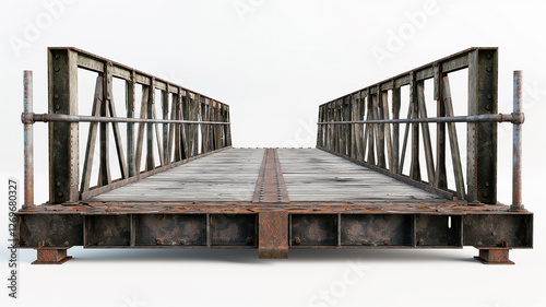 Fototapeta premium Title (with detailed description): A rustic iron bridge with a weathered and...