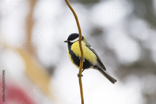 Fototapeta premium Titmouse bird sits on the branches of a tree