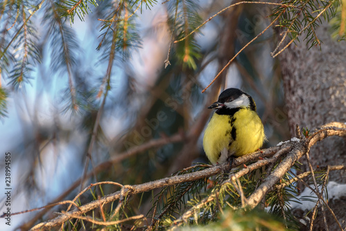 © Iri_sha, Naklejka premium titmouse seed spruce bird winter