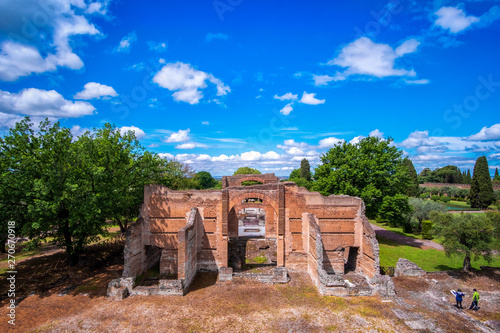 Naklejka premium Tivoli - Villa Adriana cultural Rome tour- archaeological landmark in Italy aerial view of the Three Exedras building