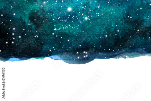 © Khaneeros, Fototapeta premium Tle nieba akwarela noc z gwiazdami. kosmiczny układ z miejscem na tekst.