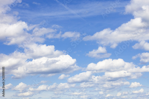 Obraz premium Tło błękitnego nieba z białymi chmurami Cumulus.