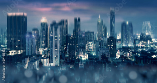 © newroadboy, Obraz premium Tło centrum miasta z abstrakcyjnym skutkiem w nocy.