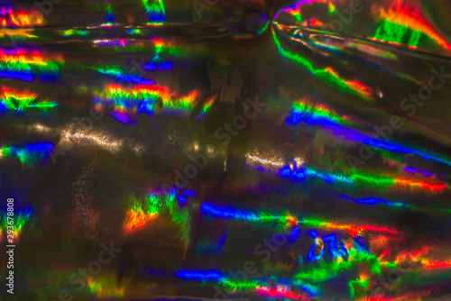© Павел Страхов, Fototapeta premium Tło holograficzne. Streszczenie błyszczące wesołe tapety. Wesoła świąteczna folia disco. Holograficzny rozmyty efekt świetlny bokeh.