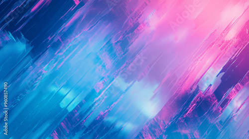 © Sawyer0, Fototapeta premium Tło w odcieniach błękitu, mięty i różu tworzy fascynujący obraz w estetyce futurystycznej. Wzory przypominające zniekształcenia nadają całości cyberpunkowy klimat.