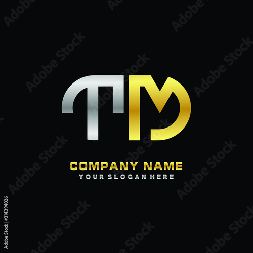 Obraz premium TM initial letters looping linked oval elegant logo silver, gold
