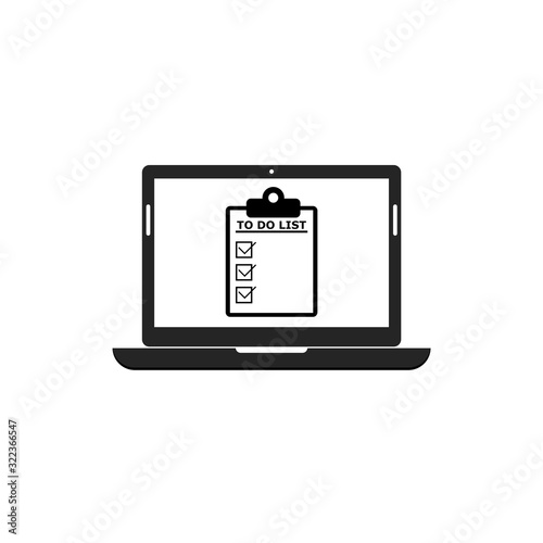 © sljubisa, Naklejka premium To do list, Check list document on laptop icon, computer with paper check list and to do list
