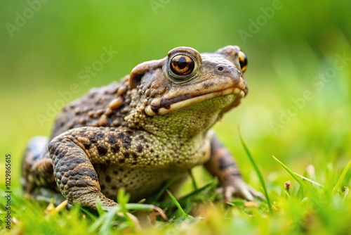 Fototapeta premium Toad amphibian without tail sitting on grass
