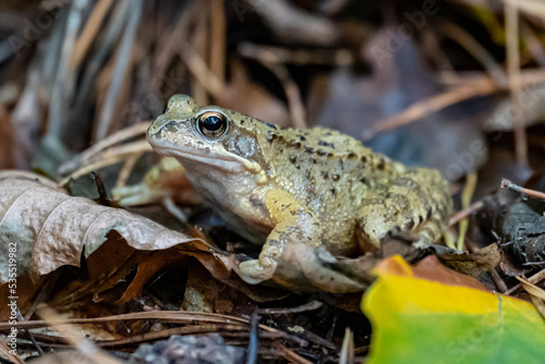 © Joern, Fototapeta premium Toad sitting on old leaves