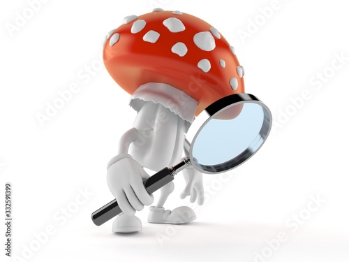 Fototapeta premium Toadstool character looking through magnifying glass