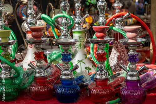 © Mauro Rodrigues, Naklejka premium Tobacco waterpipe at sale in a market
