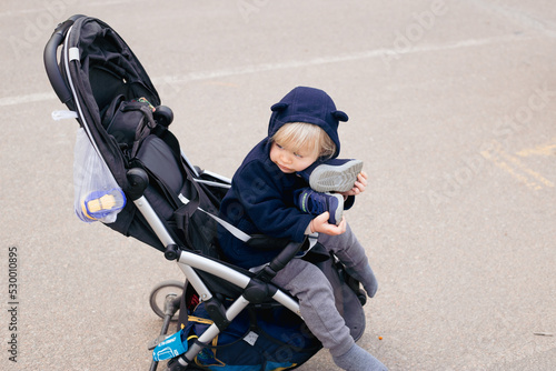 © Marharyta, Obraz premium toddler blond baby boy in a pram