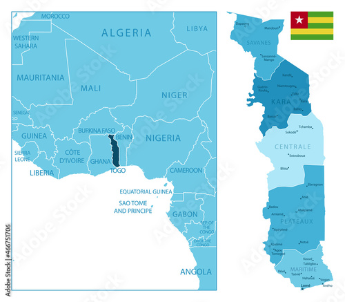 © gt29, Obraz premium Togo - highly detailed blue map.