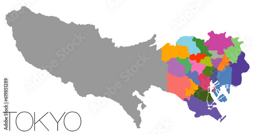Obraz premium 東京都の地図 23区 TOKIO map