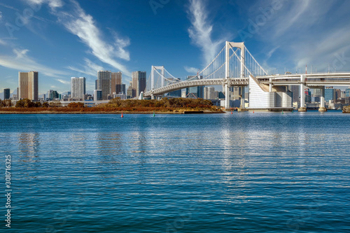 Fototapeta premium Tokyo Bay i Rainbow Bridge z Odaiba