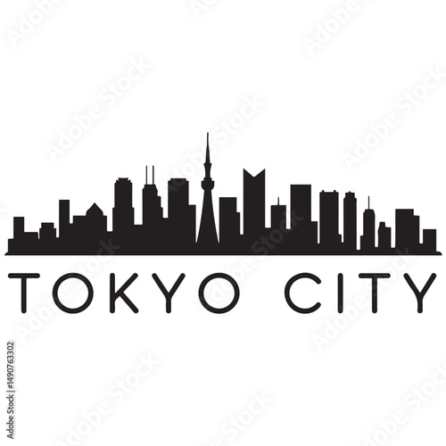 © firoz, Fototapeta premium Tokyo city skyline horizontal banner. Black of Tokyo city, Japan. Vector template for your design. Vector black silhouette. with white background