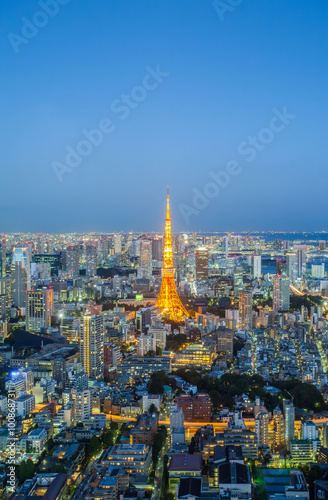 Fototapeta premium Tokyo city view and Tokyo Tower at twilight