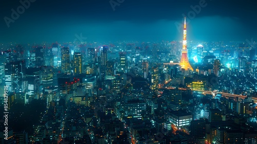© thanatpong, Obraz premium Tokyo cityscape at night
