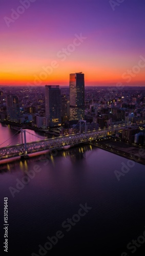 Naklejka premium Tokyo cityscape sunset aerial view bridge skyline