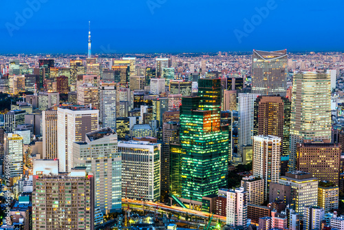 © Luciano Mortula-LGM, Naklejka premium Tokyo skyline, Japan.