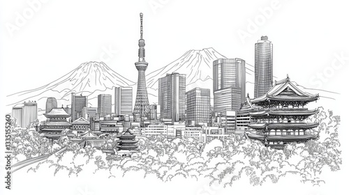 Fototapeta premium Tokyo Skyline: Modern Meets Ancient - A captivating blend of modern...
