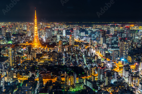 © voyata, Obraz premium tokyo tower and city skyline under blue night