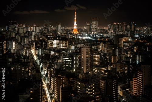 Fototapeta premium Tokyo Tower at night view, Beautiful Japan City with dark filter, Generative Ai