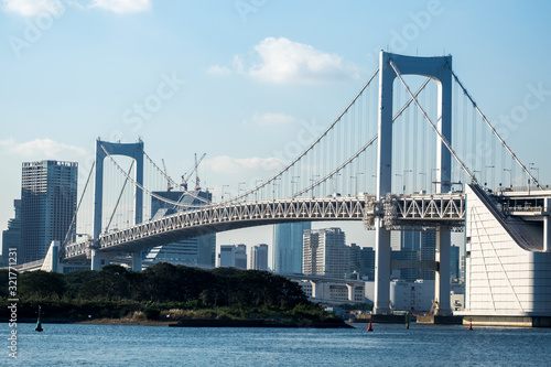© byjeng, Naklejka premium Tokyo Tower skyline and Rainbow Bridge with cityscape at Odaiba Japan