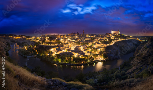 Fototapeta premium Toledo skyline after sunset, Castilla-La Mancha, Spain