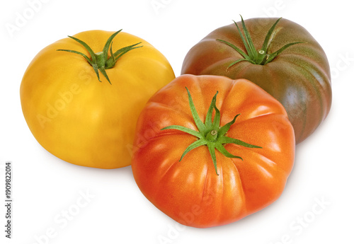 Fototapeta premium Tomate rouge côtelée,jaune et noire de Crimée