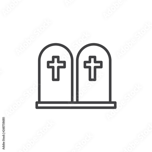 © alekseyvanin, Fototapeta premium Tomb stone line icon. linear style sign for mobile concept and web design. Two graves with cross outline vector icon. Symbol, logo illustration. Vector graphics
