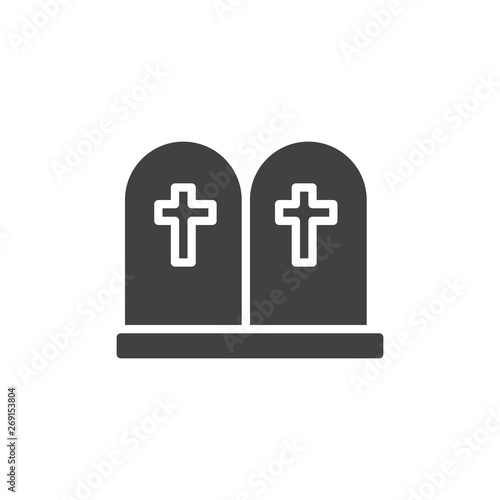 Fototapeta premium Tomb stone vector icon. filled flat sign for mobile concept and web design. Two graves with cross glyph icon. Symbol, logo illustration. Vector graphics