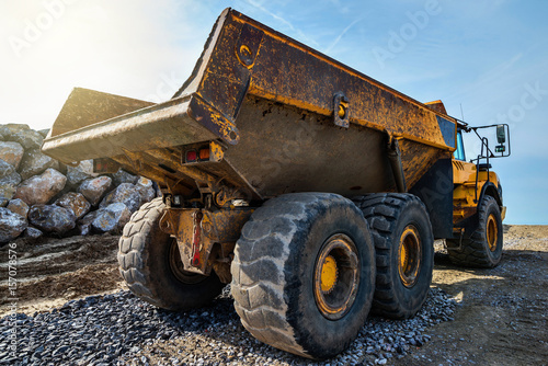 © Image'in, Obraz premium tombereau en gros plan à l'aube (camion de chantier)