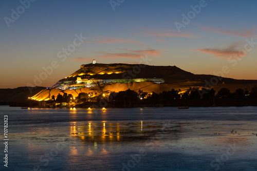 Obraz premium Tombs of Nobles at night, Nile River, Aswan, Egypt