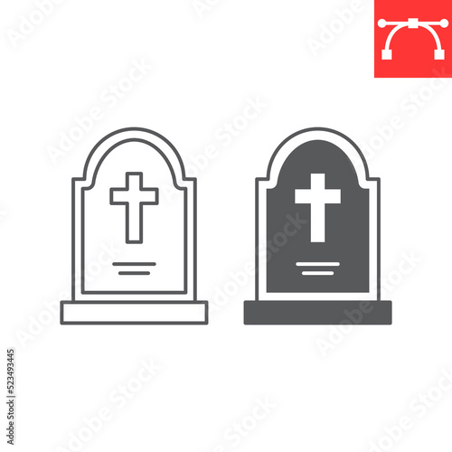 Fototapeta premium Tombstone line and glyph icon, halloween and rip grave, gravestone vector icon, vector graphics, editable stroke outline sign, eps 10.