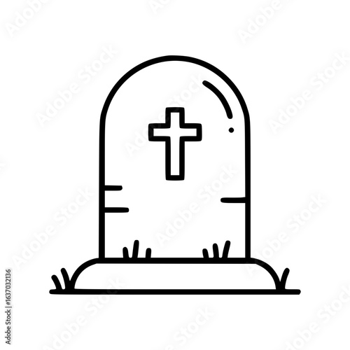 Fototapeta premium Tombstone with cross on grass background representing Halloween icon