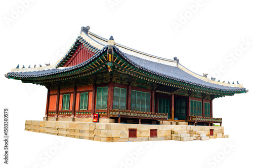 © piti, Naklejka premium Tongmyeongjeon Hall Korea traditional wooden structure houused isolate on transparent background.