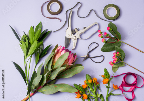 Obraz premium Tools and accessories florists need for making up a bouquet