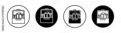 © Krrish, Obraz premium Tools box flat line icon set. Tools box Thin line illustration vector