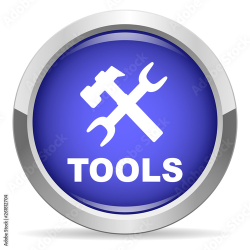 © STANISLAV, Obraz premium Tools icon. Round bright blue button.
