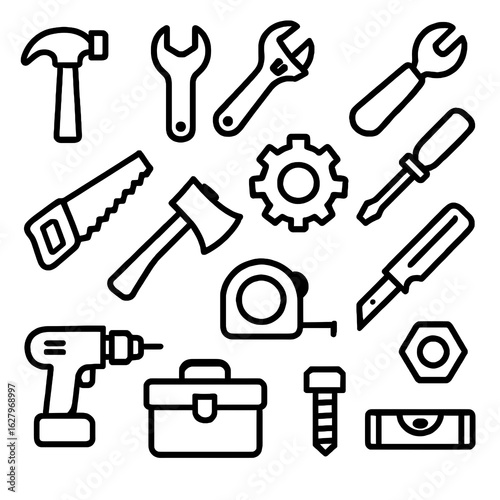 © Farid, Fototapeta premium tools icon set. set of tools. tools icons set outline tools icon set.