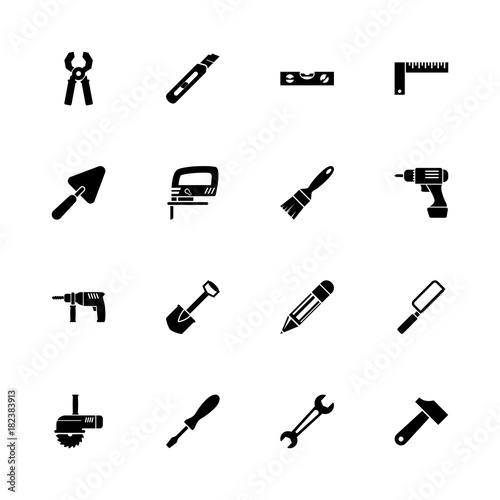 © Valentyna, Fototapeta premium Tools icons - Expand to any size - Change to any colour. Flat Vector Icons - Black Illustration on White Background.