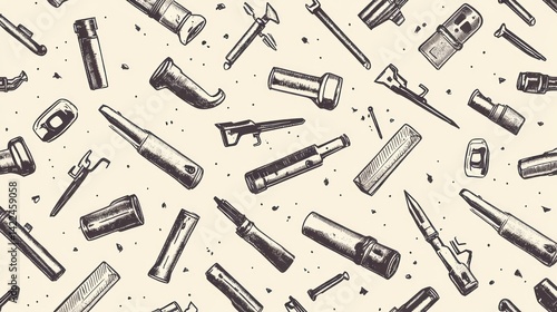Obraz premium Tools pattern background, workshop texture, seamless design, craft equipment, DIY project